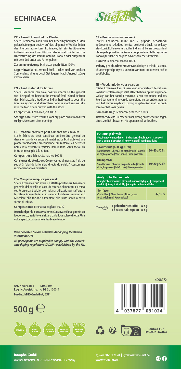 Stiefel Echinacea kann sich bei fütterungsbedingten Mangelerscheinungen positiv auf das allgemeine Wohlbefinden des Pferdes auswirken.