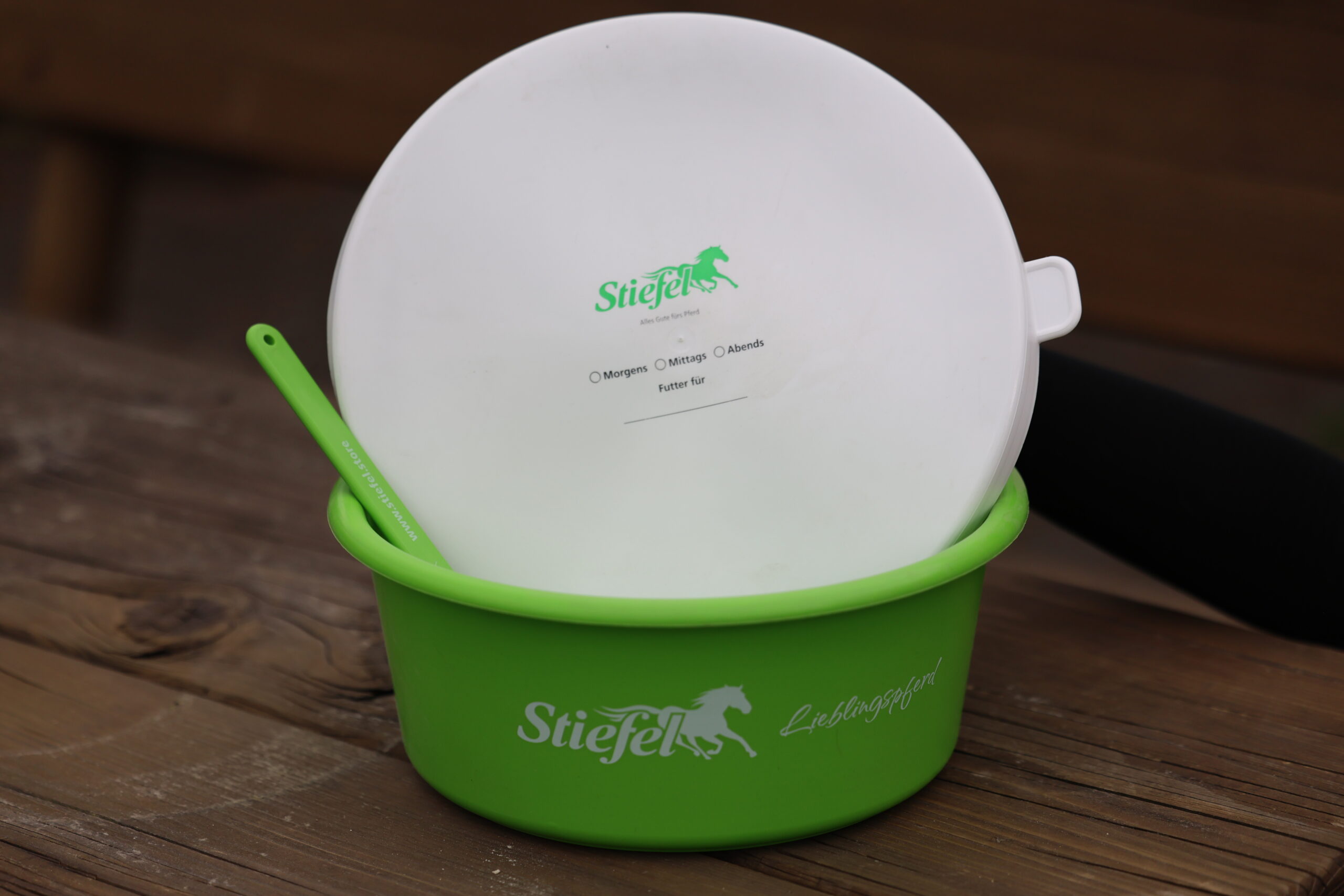 Stiefel Futterschüssel eignet sich damit optimal zur Aufbewahrung oder Zubereitung von Futter im Stall, aber auch für unterwegs. Inklusive Deckel.