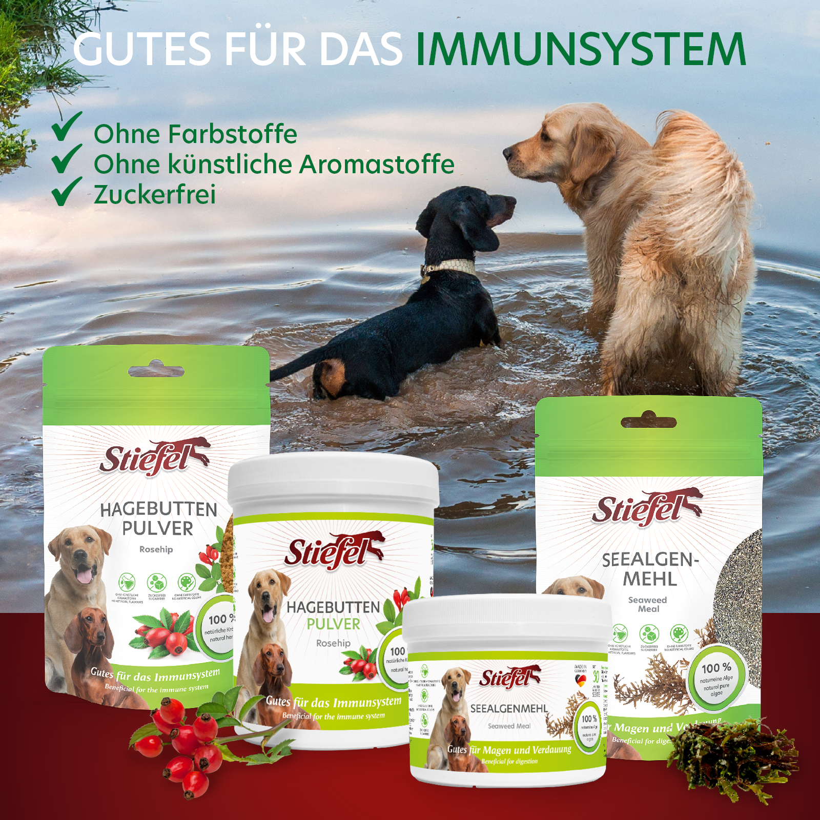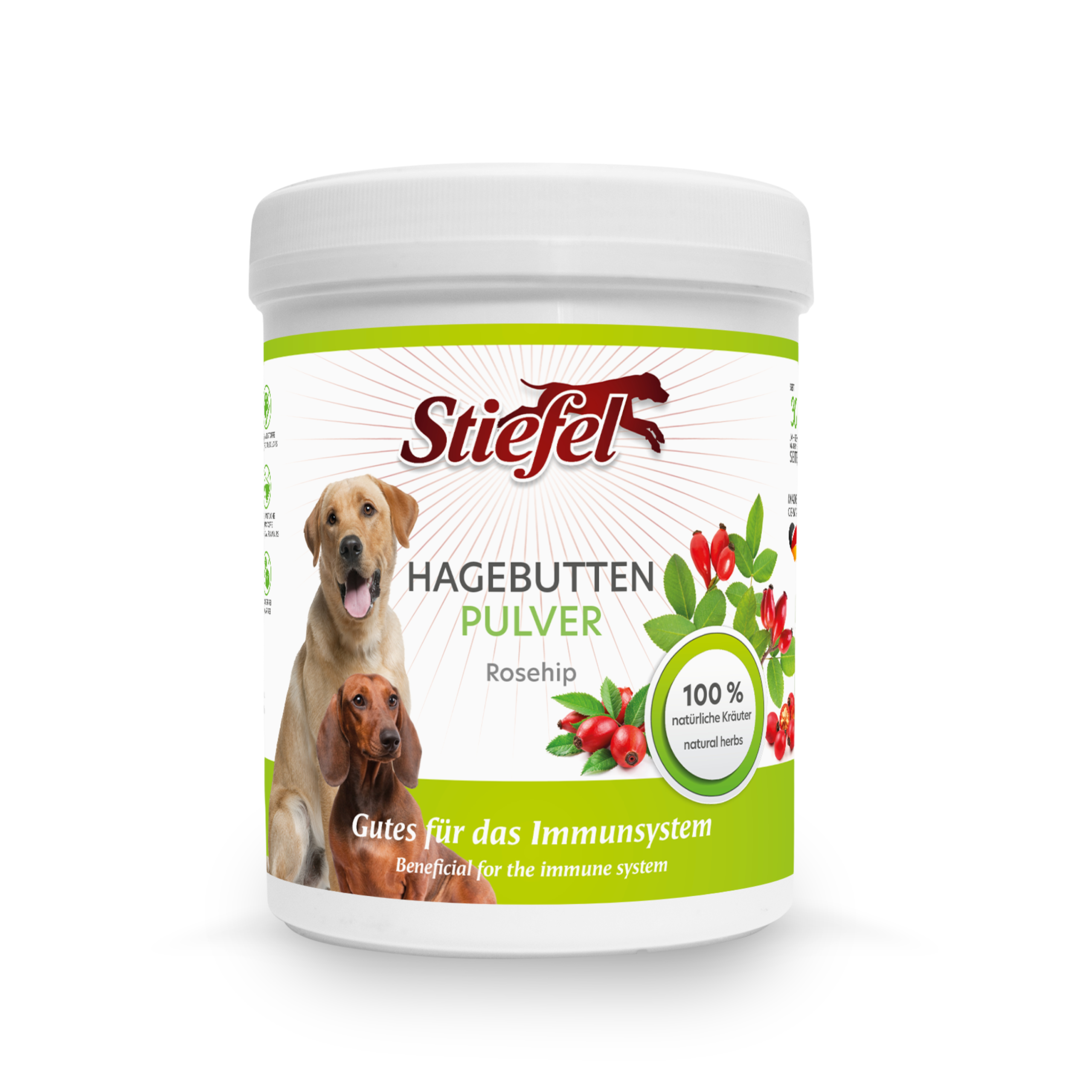 Stiefel Hagebuttenpulver kann zur Unterstützung des Immunsystems und zur Stärkung der Abwehrkräfte beitragen.
