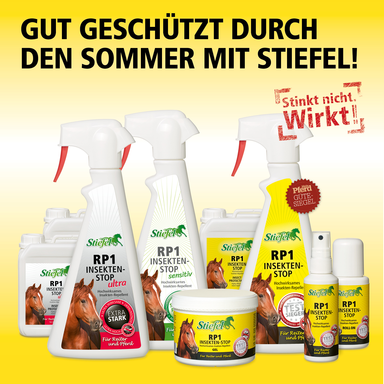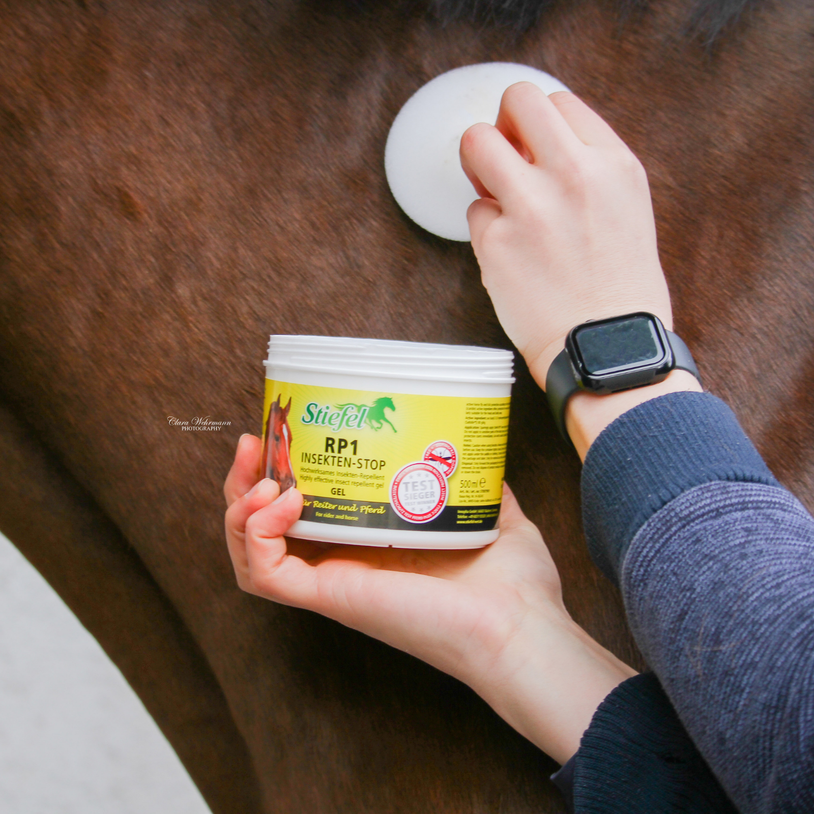 Stiefel RP1 Insekten-Stop Gel ist ein hochwirksames Insekten-Repellent mit aktivem Zecken- und Insektenschutz nach Biozidverordnung in Gelform. Stiefel RP1 Gel ist besonders für sensible Stellen und sprühempfindliche Pferde geeignet, da das Gel mit dem mitgelieferten Schwamm auf das Pferd aufgetragen wird. Der enthaltene Wirkstoff Saltidin® (Icaridin) ist für uns Menschen beinahe geruchslos und belästigt weder Mensch noch Pferd nicht mit einem unangenehmen Geruch. Insekten hingegen nehmen Gerüche sensorisch wahr und werden von dem Repellent abgeschreckt.