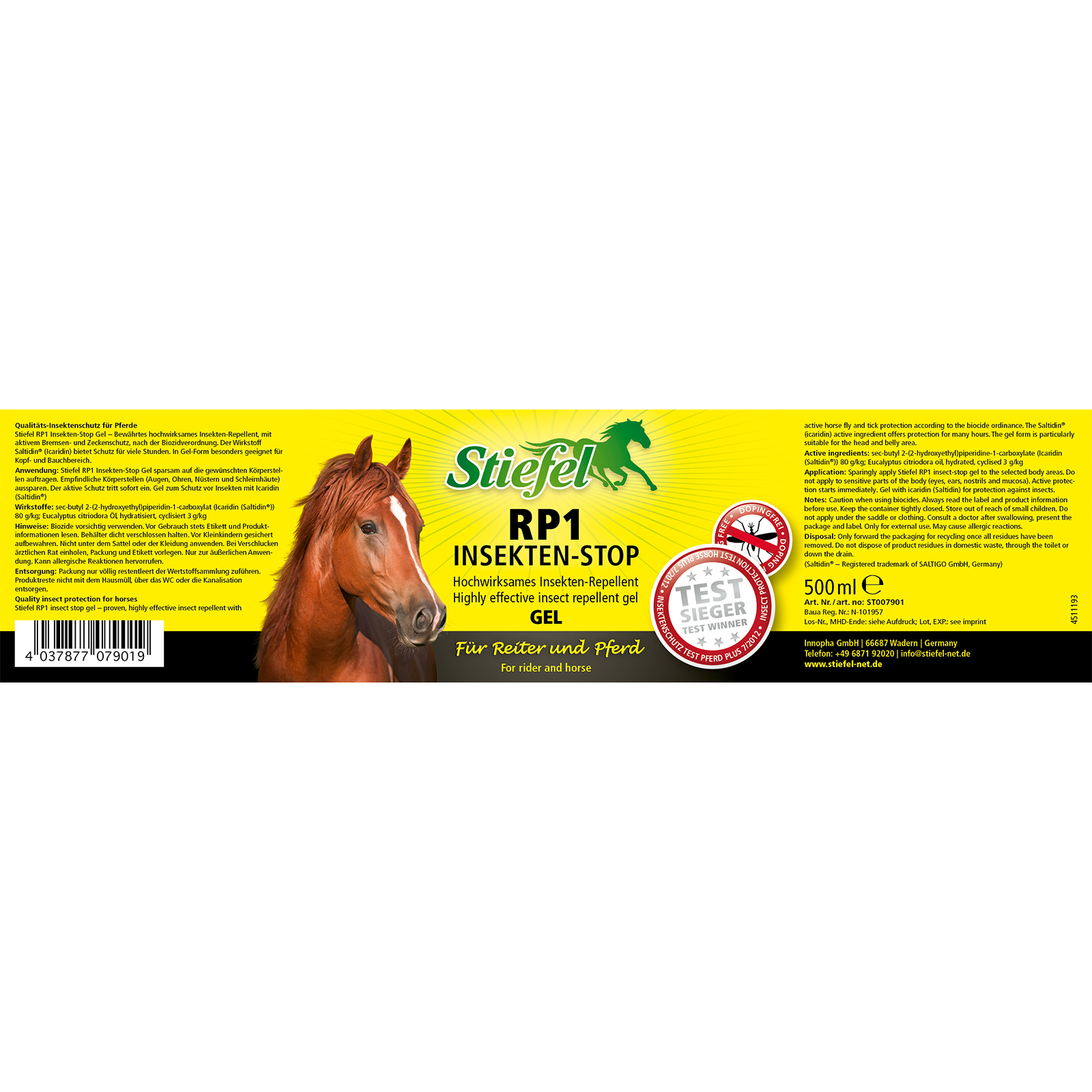 Stiefel RP1 Insekten- Stop Gel sparsam auf die gewünschten Körperstellen auftragen. Empfindliche Körperstellen (Augen, Ohren, Nüstern und Schleimhäute) aussparen. Der aktive Schutz tritt sofort ein. Gel zum Schutz vor Insekten mit Icaridin (Saltidin).
